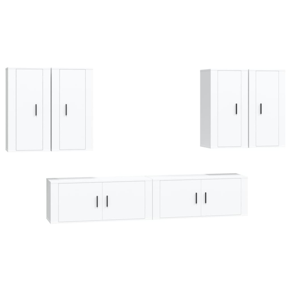Set dulap TV, 6 piese, alb, lemn prelucrat