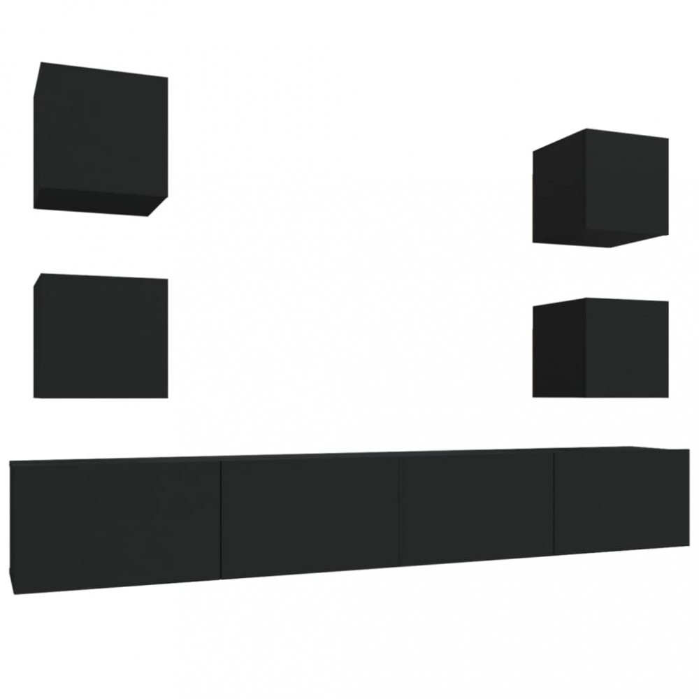 Set dulap TV, 6 piese, negru, lemn prelucrat