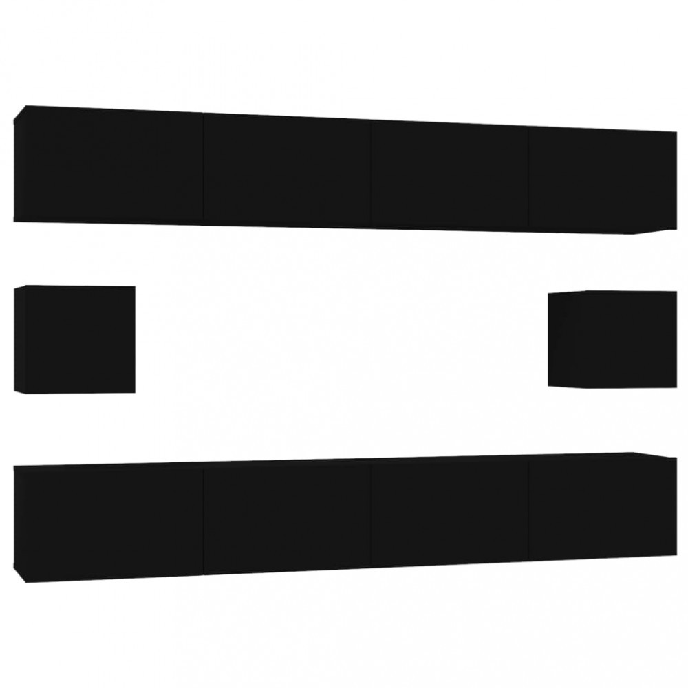 Set dulap TV, 6 piese, negru, lemn prelucrat