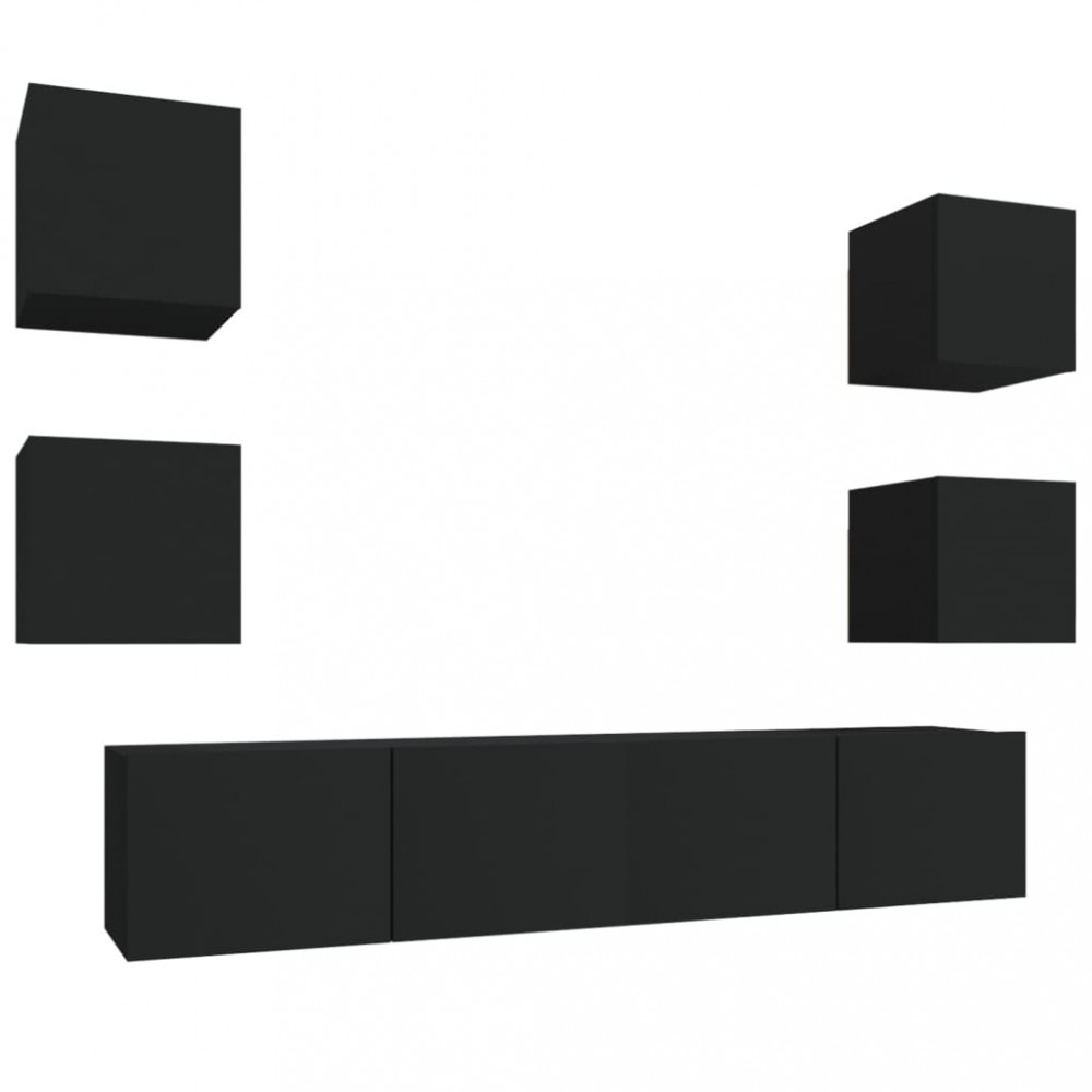 Set dulap TV, 6 piese, negru, lemn prelucrat