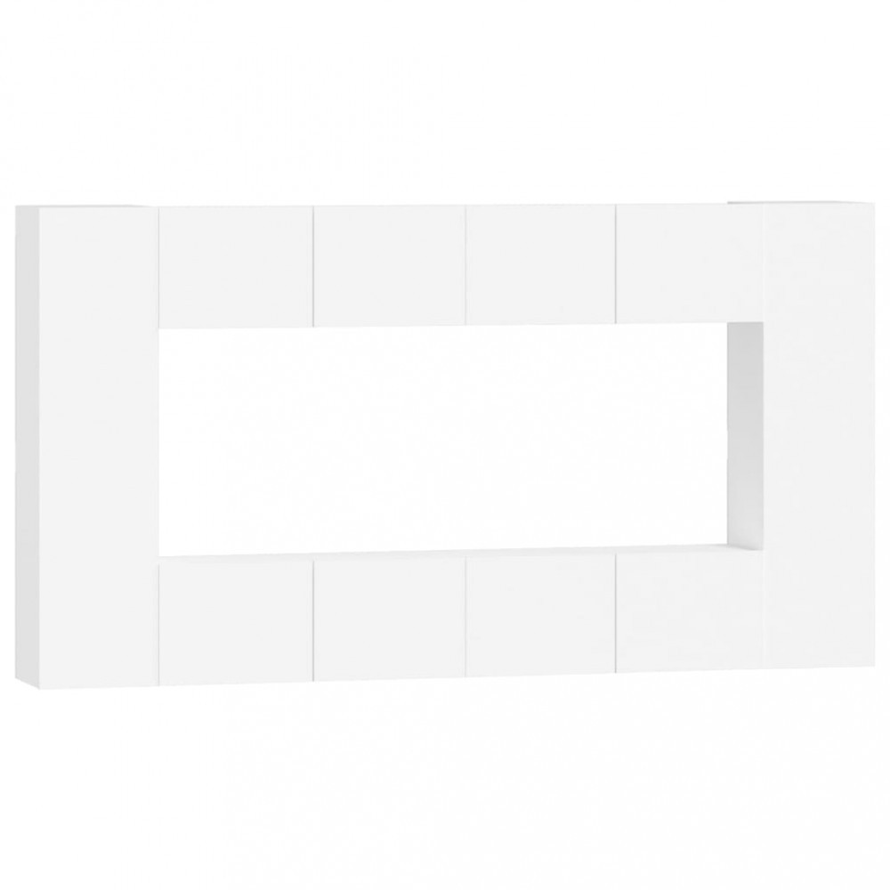 Set dulap TV, 8 piese, alb, lemn prelucrat