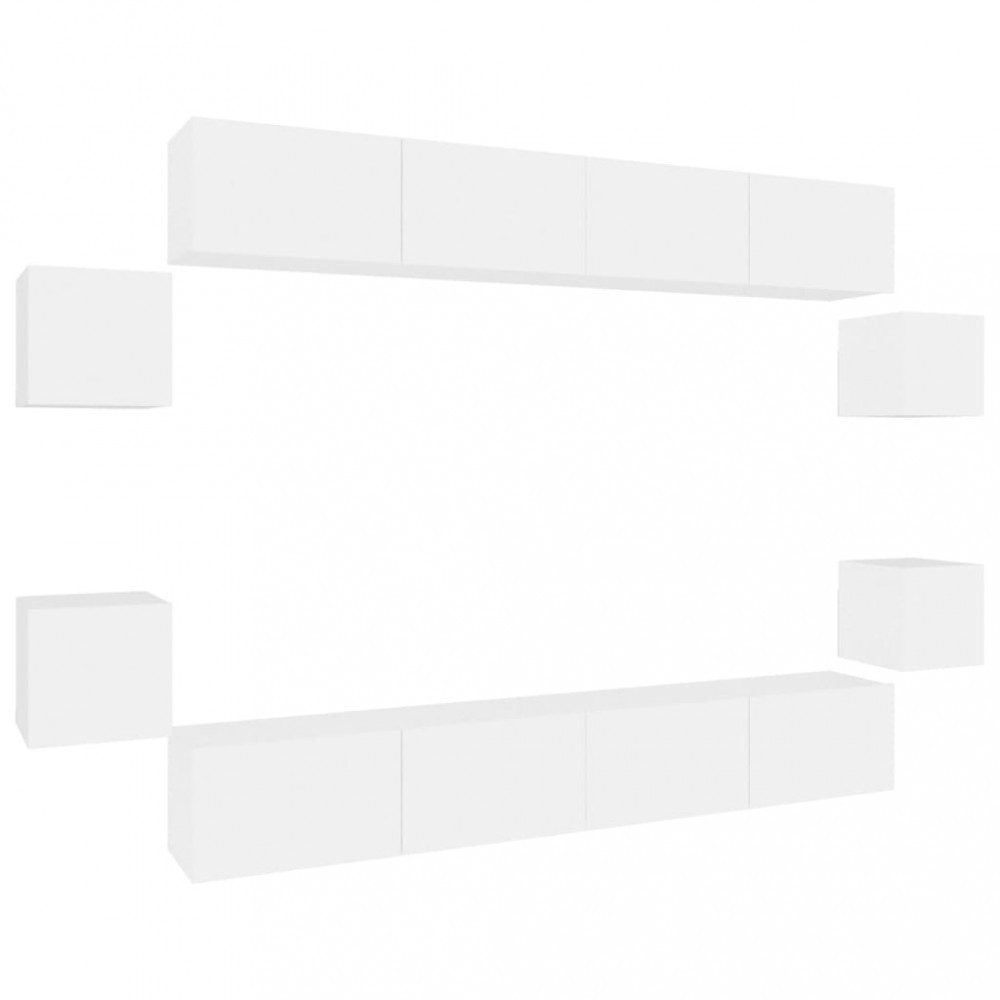 Set dulap TV, 8 piese, alb, lemn prelucrat