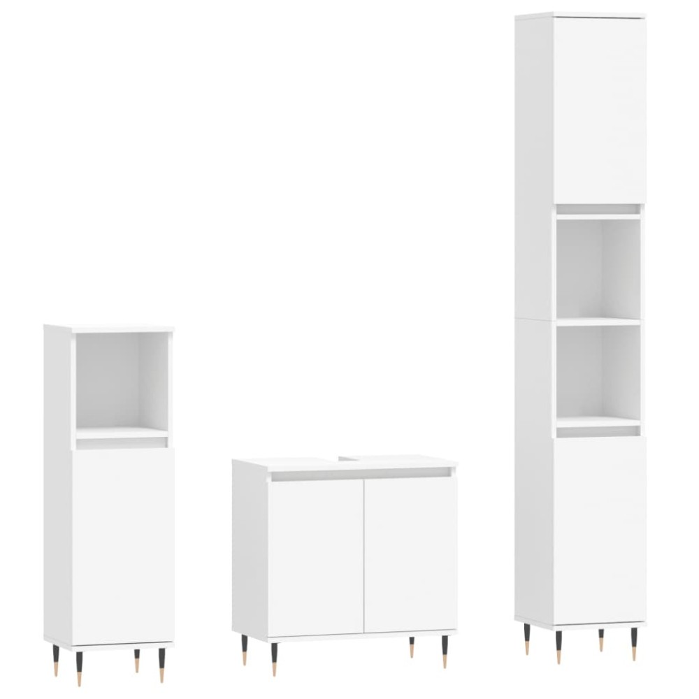 Set dulapuri de baie, 3 piese, alb, lemn prelucrat