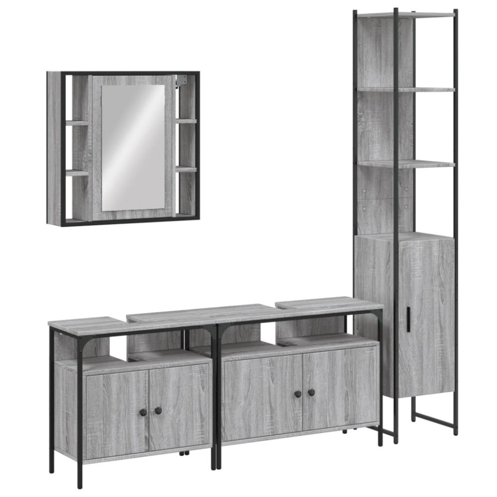 Set dulapuri de baie, 4 piese, gri sonoma, lemn prelucrat