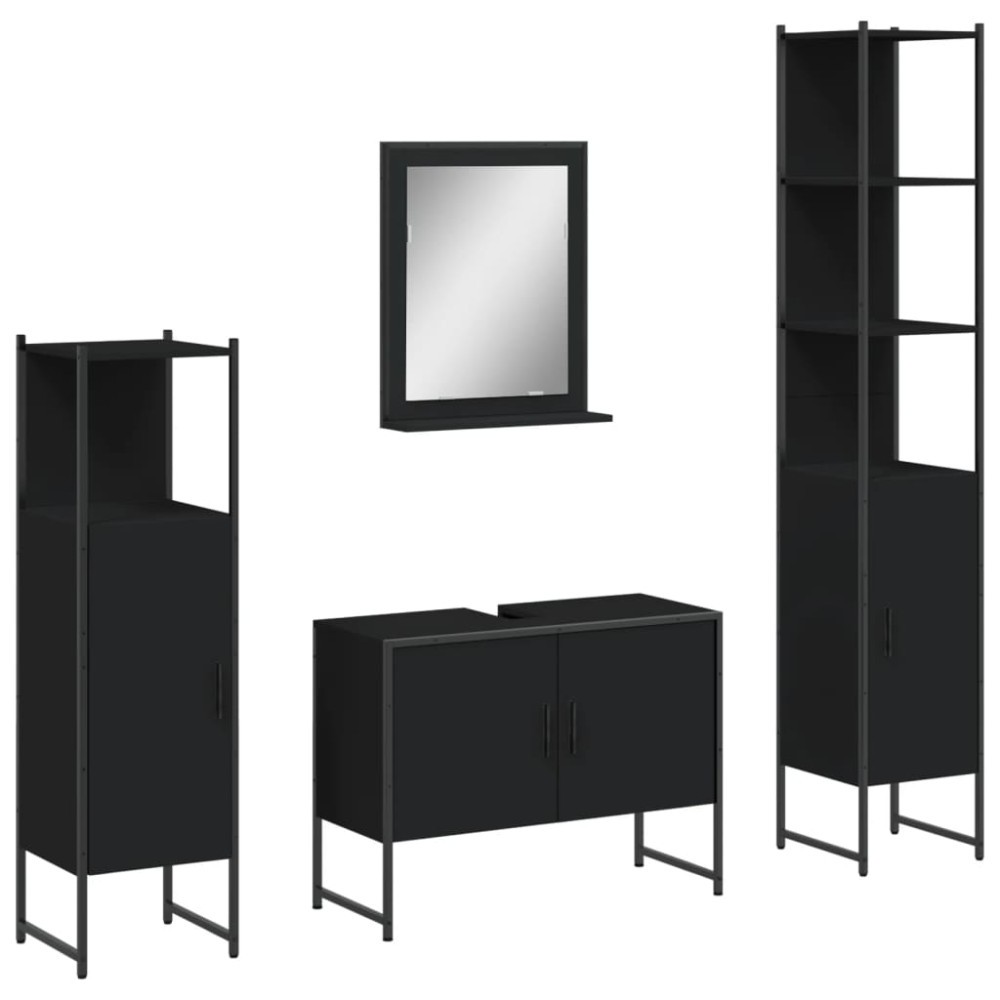 Set dulapuri de baie, 4 piese, negru, lemn prelucrat