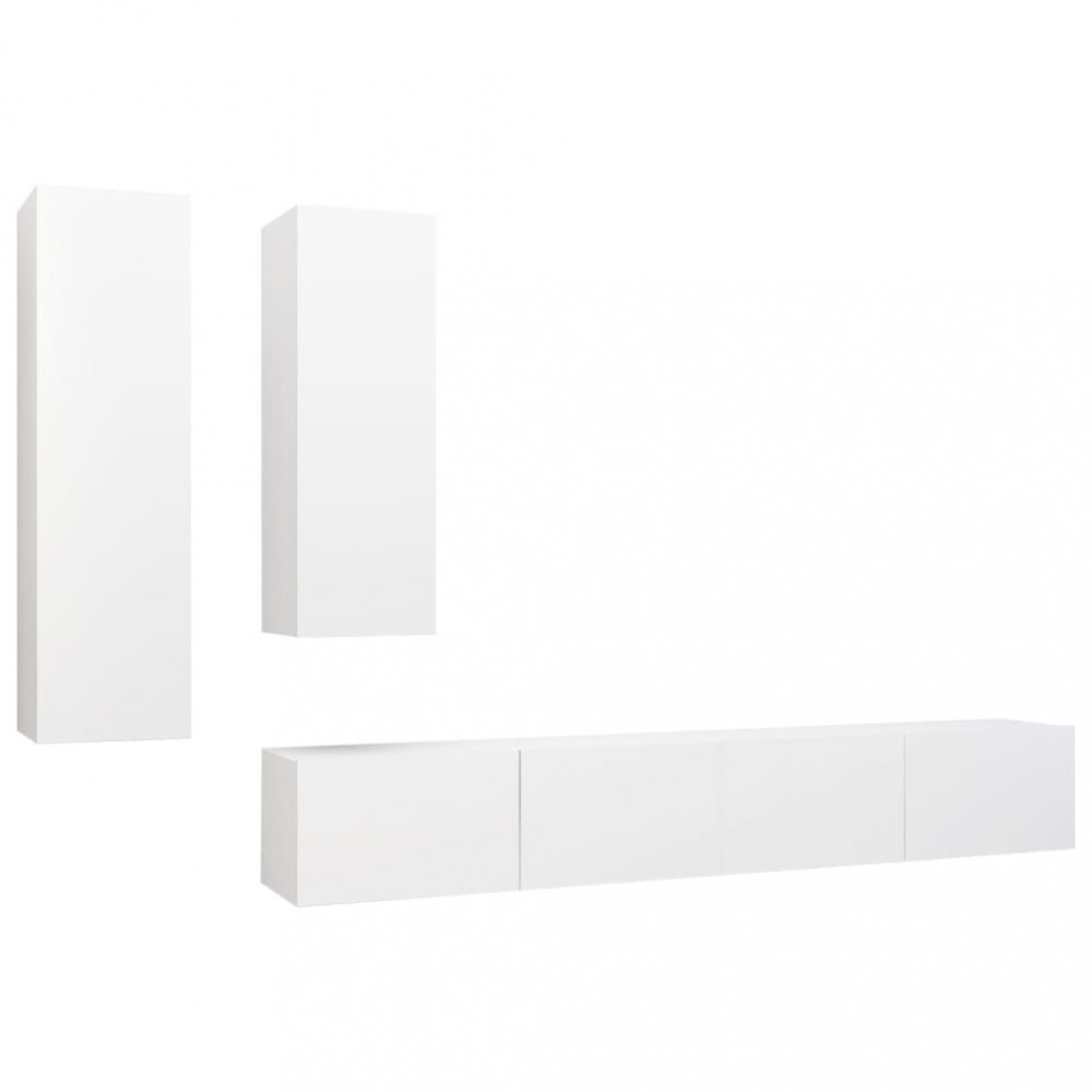 Set dulapuri TV, 4 piese, alb, lemn prelucrat