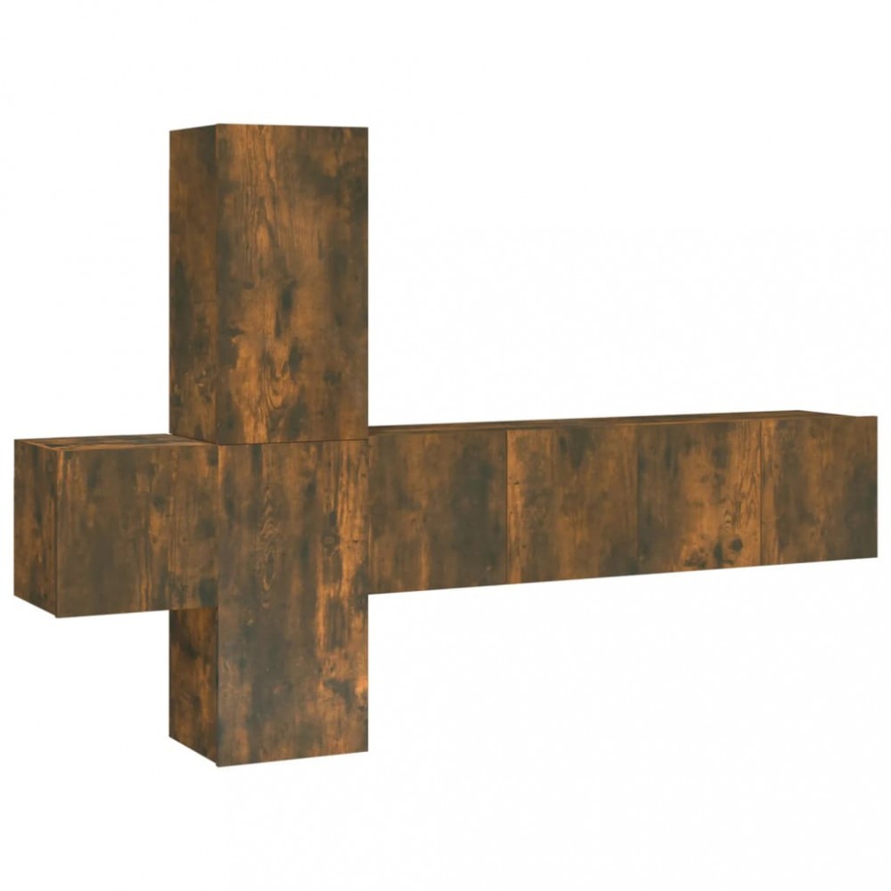 Set dulapuri TV, 5 piese, stejar fumuriu, lemn prelucrat