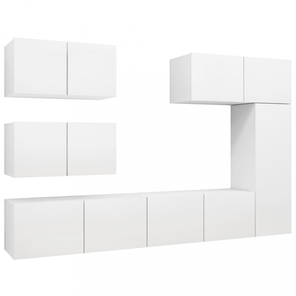 Set dulapuri TV, 6 piese, alb, lemn prelucrat