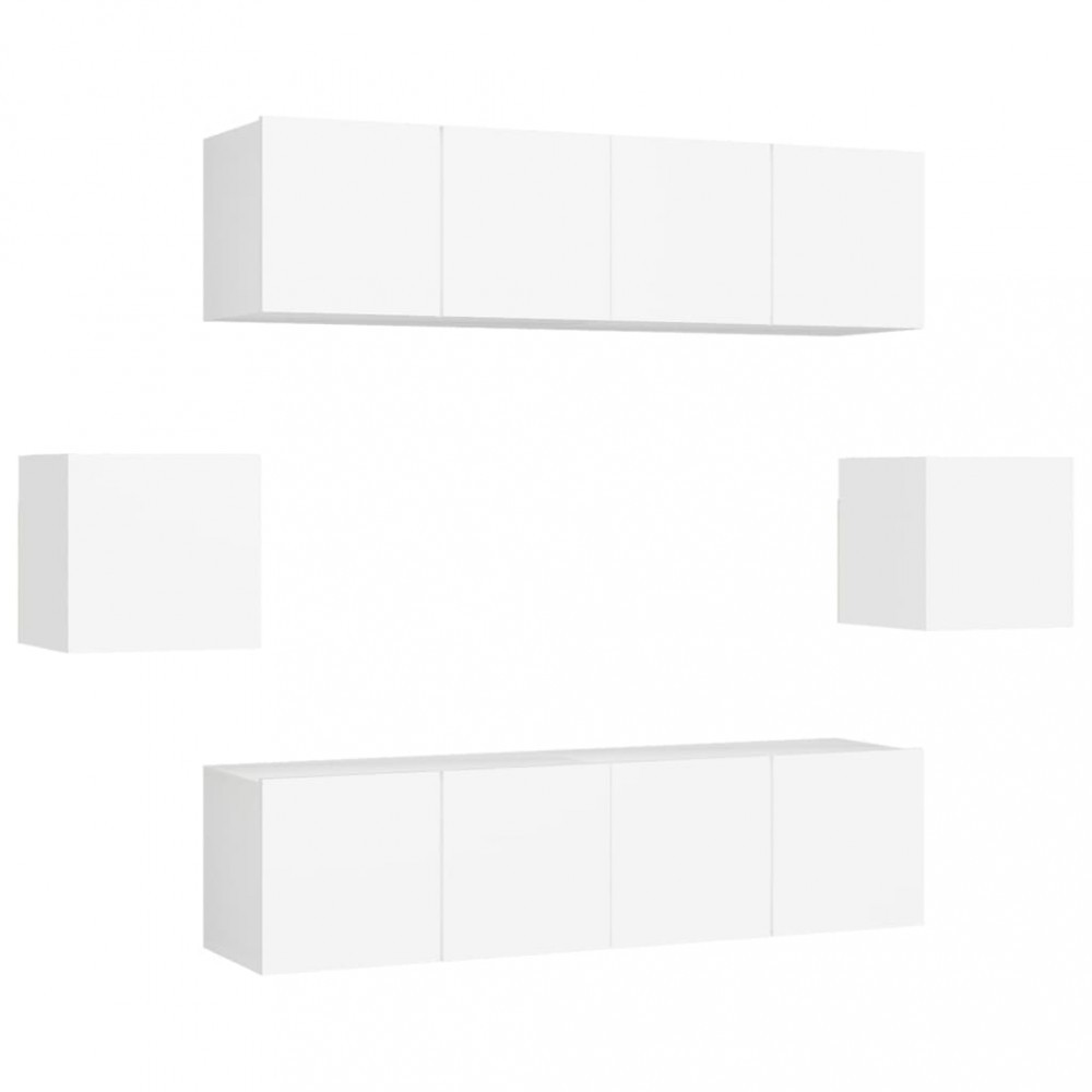 Set dulapuri TV, 6 piese, alb, lemn prelucrat