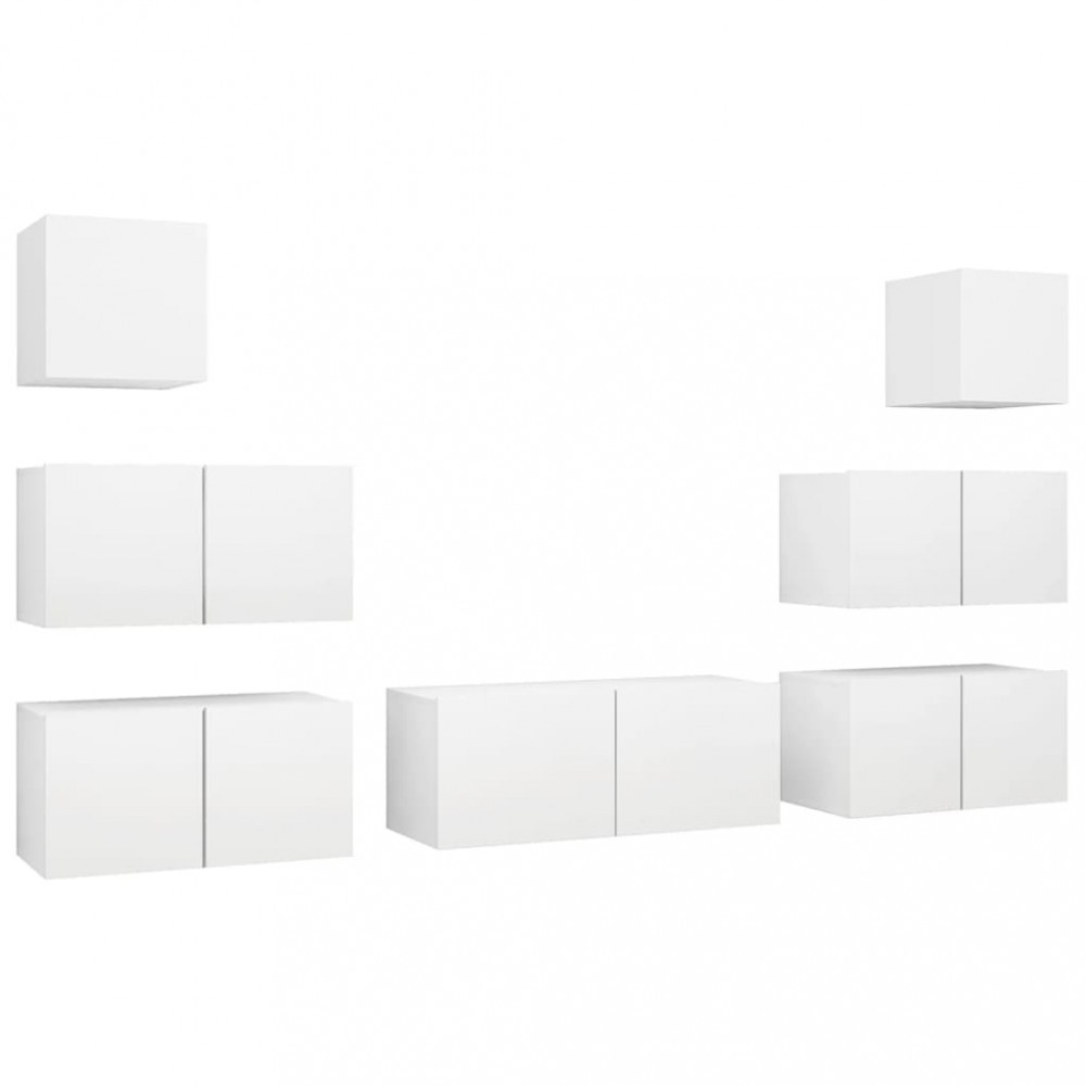 Set dulapuri TV, 7 piese, alb, lemn prelucrat