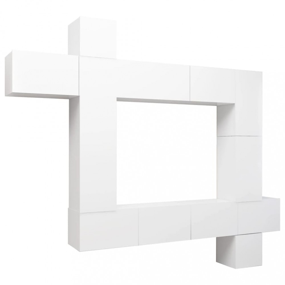Set dulapuri TV, 9 piese, alb, lemn prelucrat