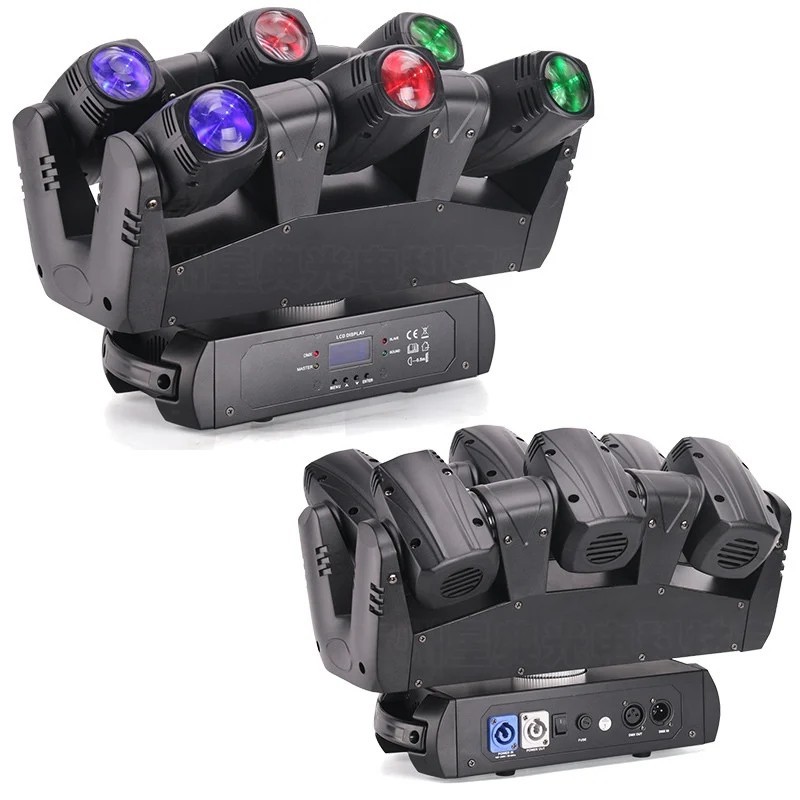 - Conectori: 1 x Socket INPUT pentru rețea, 1 x sursă de ieșire pentru rețea, 1 x intrare DMX 5 pini + 1 x intrare DMX 3 pini, 1 x ieșire DMX 5 pini + 1 x ieșire DMX 3 pini