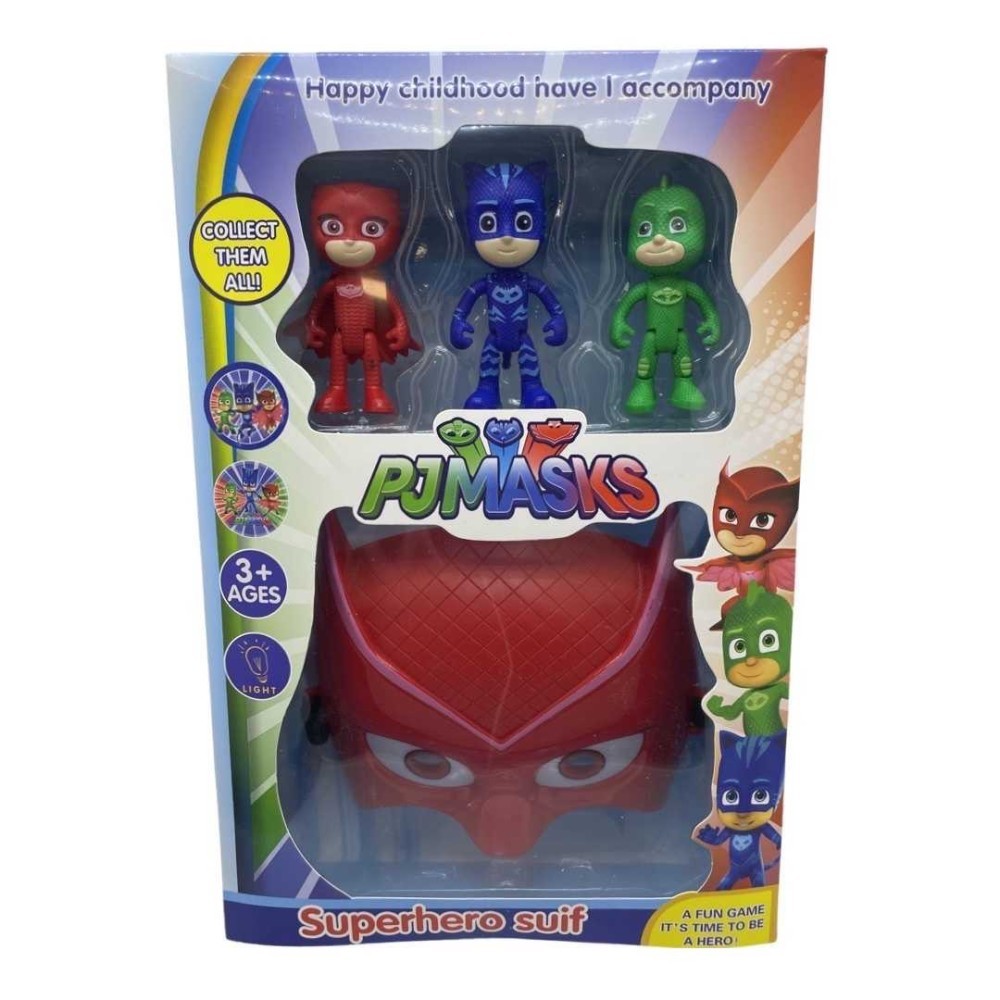 Set 3 eroi in pijama si masca de culoare rosie. Figurinele sunt realizate din plastic si au inaltimea de 7-8 cm. Recomandate copiilor cu varsta peste 3 ani.