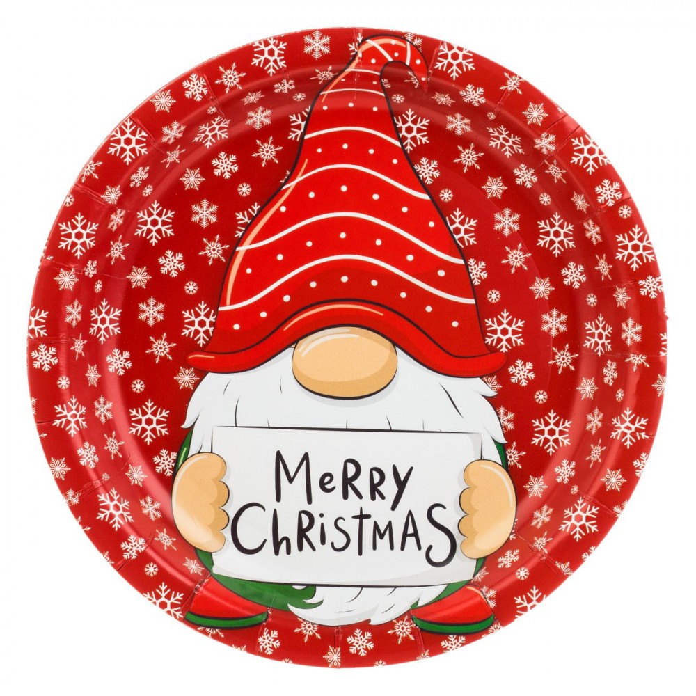 Set Farfurii Carton, Gnomes, 18 cm, 10 Buc, Crăciun, Roșu, Model Zapadă