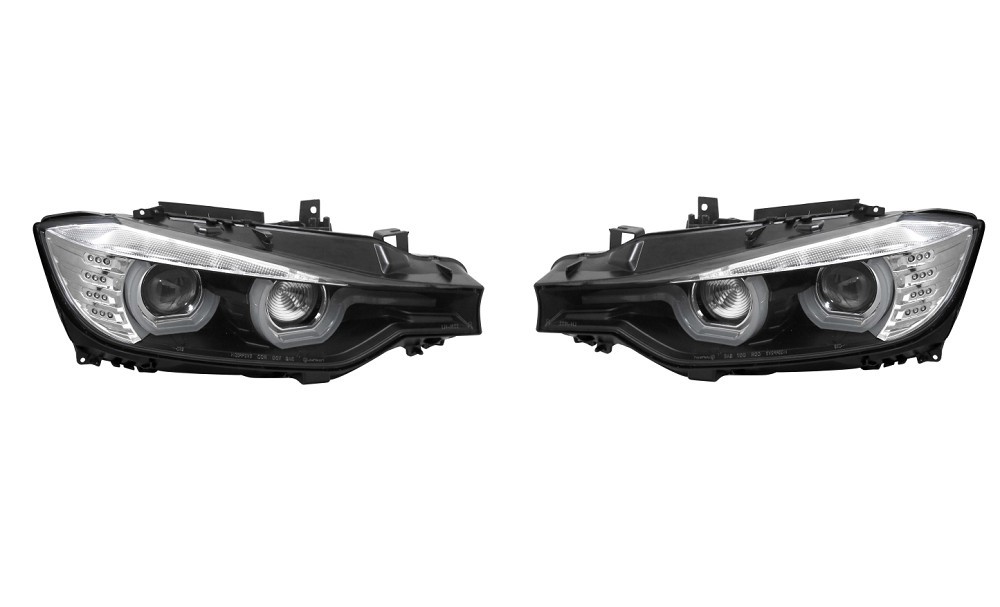 Set faruri tuning BMW 3/3 GT, 01.2012-2015, cu LED indicator; cu daytime running light; H9; electrical; negru, transparent; Tuning; halogen,