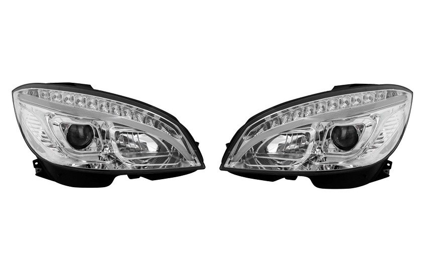 Set faruri tuning Mercedes Clasa C, 03.2011, partea stanga+dreapta, Taiwan, cu indicator led; cu " lumina timp de zi" tip LED; H9+LED;