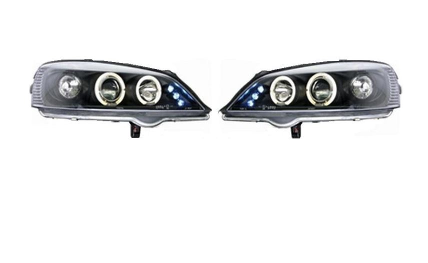 Set faruri tuning Opel Astra G 01.1998- 08.2009 BestAutoVest fata stanga+dreapta, transparent negru, tip bec H1+H1