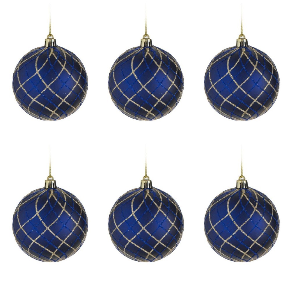 Set Globuri Brad Crăciun, Fără Brand, Model 8cm, Culoare Albastru Mat, Modele Glitter Albastru & Auriu, 6 Bucăți