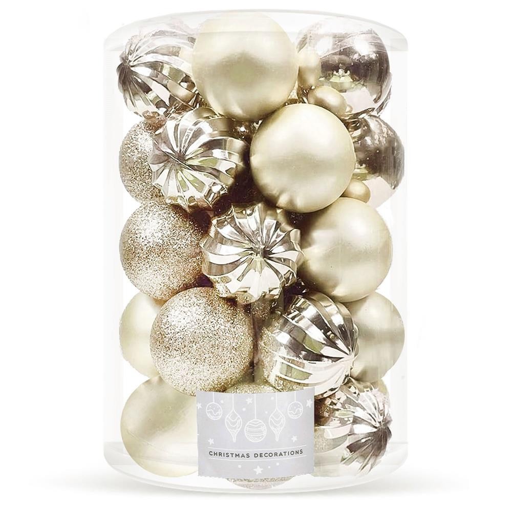 Culoare: auriu Material: plastic Cantitate: 20 globuri Dimensiune: 6 cm Modele: mat, cu sclipici, in relief si bile disco Incasabil, snururi aurii pentru agatat Setul include urmatoarele globulete: 4x Disco ball - 6 cm 4x Mat - 6 cm 4x In relief- 6 cm 4x Stampila - 6 cm 4x Sclipici - 6 cm Craciunul, ca si intreaga perioada de iarna, este o perioada magica, plina de caldura si de o atmosfera unica, creata datorita unui spectacol de decoratiuni fabuloase si constelatii luminoase incantatoare. Designul din plastic creste siguranta datorita materialului incasabil. Alegerea lor in locul globurilor de sticla va contribui la siguranta celor mici din casa. Globuletele pentru bradul de Craciun arata la fel ca cele din sticla. Datorita suprafetei lor netede ca o oglinda si a finisajului cu sclipici, acestea reflecta lumina in mod fantastic, sporind efectul de decoratiuni sclipitoare si stralucitoare, care aduc in minte asocieri cu un peisaj de iarna rece si inzapezit. Incasabil - sigur pentru casele cu copii si animale de companie Culori la moda - ideale atat pentru decoruri traditionale, cat si moderne Impachetate estetic - pur si simplu le infasurati cu panglica si sunt gata de a fi oferite cadou Vin cu snururi decorative - nu trebuie sa va faceti griji cu privire la problemele de agatare Globuletele pentru bradul de Craciun va vor permite sa va decorati casa de Craciun intr-un mod nelimitat. Puteti crea din ele: Aranjamente unice pentru bradul de Craciun Aranjamente de masa si de pervaz Decoratiuni pentru usi si ornamente pentru rame de usa Cadouri practice de Craciun pentru cei dragi Impachetari unice pentru cadouri - folositi mai multe in loc de funda