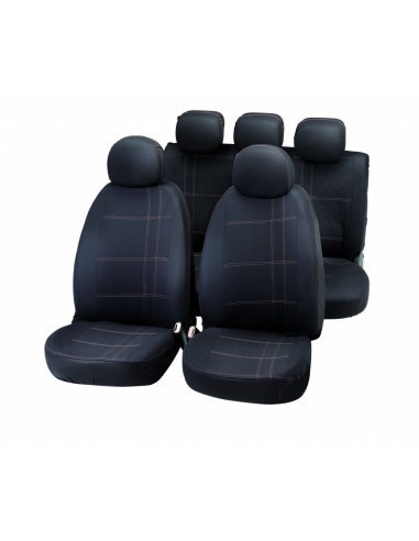 Set huse scaun auto "EMBROIDERY" culoare negru/gri dimensiune universala cu parte elastica spate si fermoare spate duble pentru autoturism cu bancheta spate rabatabil adaptabile pentru toate masinile, de asemenea cu sistem airbag. Setul include 2 scaune față, 3 locuri spate și 5 tetiere. Material poliester, lavabil conform instrucțiunilor de pe etichetă.