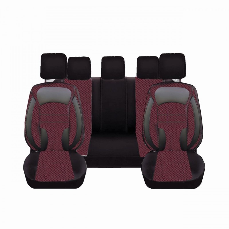 Set huse scaune auto DeluxeBoss, 11 piese, stofa cu piele ecologica, negru cu rosu