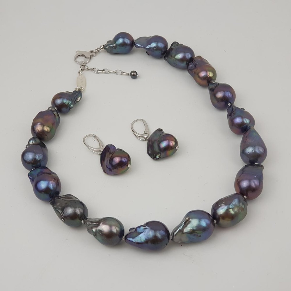 Set Imposing din perle baroc negre, compus din: colier și cercei. Colier Imposing din perle baroc negre cu reflexe multicolore. Dimnesiune perle aproximativ 30/18 mm. Lungime: 46 – 53 cm, reglabil. Cercei Imposing din perle baroc negre cu reflexe multicolore. Închizătoare cu siguranță. Lungime : 4 – 4,2 cm, dimnesiune perle aproximativ 30/18 mm. Detalii produs: Argint 925/°°° placat cu rodiu, cu tratament antioxidant unic. Certificat de garanție a materialului. Cutie și pungă cadou incluse. Fiecare bijuterie este realizată manual, cu precizia inconfundabilă Made in Italy. Notă: Pot exista mici diferențe față de imaginea produsului, deoarece fiecare bijuterie este realizată manual, iar perlele sunt neuniforme.