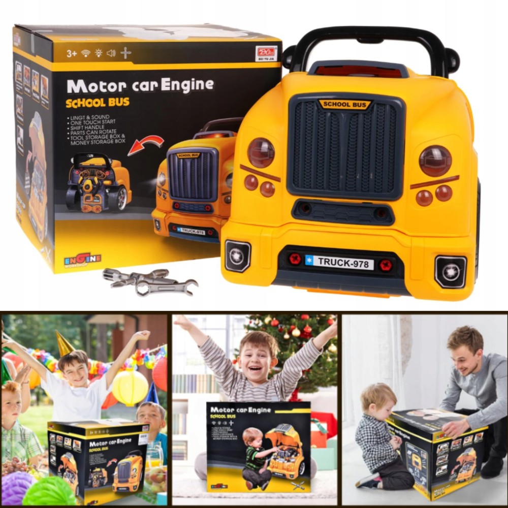AUTOBUZ ȘCOLAR – SET INTERACTIV DE MECANIC MICI | 59 PIESE | LUMINI, SUNETE, SCULE