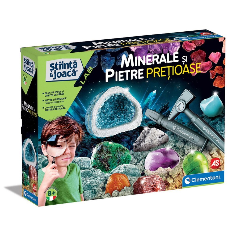 Stiinta & Joaca: Laborator Educational - Minerale si Geode Descoperă universul fascinant al pietrelor și mineralelor cu setul educațional Ç×Stiinta & Joaca - Minerale și GeodeÇŁ de la Clementoni! Acest kit inovator oferă copiilor o aventură captivantă în lumea geologiei, ajutându-i să descopere și să creeze propriile lor roci impresionante. Explorare Didactică: Învață despre minerale și geode prin activități hands-on și experimente creative. Instrumente Incluse: Setul vine complet echipat cu o geodă cu cristale și minerale, un ciocan, dalta, matriță pentru geodezie, cupă cu capac, spatulă, pipetă, pigment și substanțe chimice, toate fiind sigure pentru utilizarea copiilor. Educație și Siguranță: Oferă un manual ilustrat detaliat, pentru o folosire sigură și ușoară. Recomandat pentru copiii cu vârsta de 8 ani și peste. Descoperire și Distracție: Stimulează curiozitatea și învățarea despre principalele fenomene științifice și naturale în cel mai plăcut mod. Îndrumă-ți copilul pe calea descoperirii și a creației cu acest set de lider în categoria jocurilor științifice, care încurajează nu doar cunoașterea, ci și dragostea pentru știință!