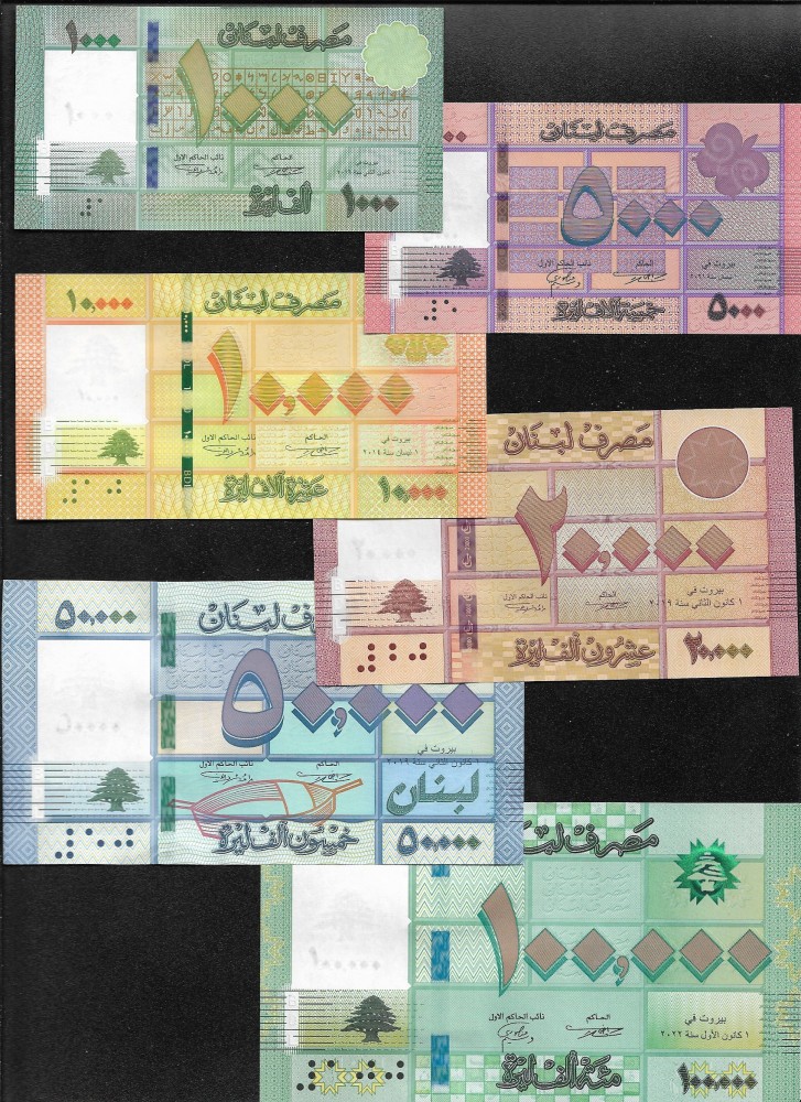 Set Liban 1000 + 5000 + 10000 + 20000 + 50000 + 100000 livres unc