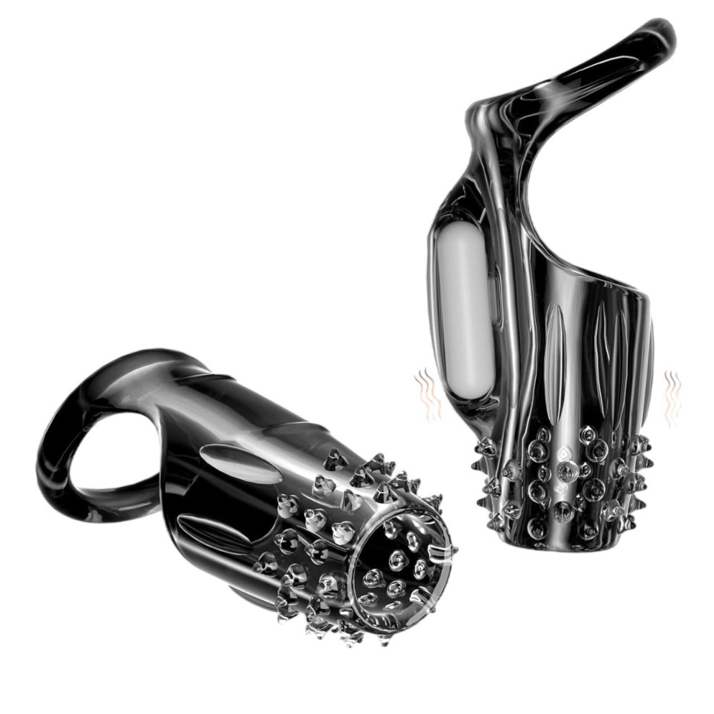 Set compus din 2 mansoane pentru penis, ideale pentru oricine doreste sa aduca un plus de senzatie si noutate in viata intima. Ambele mansoane sunt prevazute cu multiple formatiuni de tip cili dispusi pe suprafata lor, aspect ce ofera o stimulare intensa a peretilor vaginali.Setul include si un glont mic vibrator, care ofera un plus de stimulare pentru ambii parteneri. Glontul poate fi introdus in locasul dedicat al mansoanelor si functioneaza pe baza a 2 baterii de tip AG10 care sunt incluse. Mansoanele includ inel pentru testicule care ajuta la o buna fixare, prevenind alunecarea lor de pe penis. Modelul cu inel ajuta totodata la mentinerea unei erectii ferme mai mult timp dar poate ajuta si la intarzierea ejacularii prin restrangerea fluxului sanguin in mai multe puncte. Alte detalii: material TPE + ABS, diametrul max. 3.7cm.. | Material: TPE | Lungime: 12 cm | Diametru: 3.5 cm | Baterii: 2 x AG10 | Culoare: Transparent