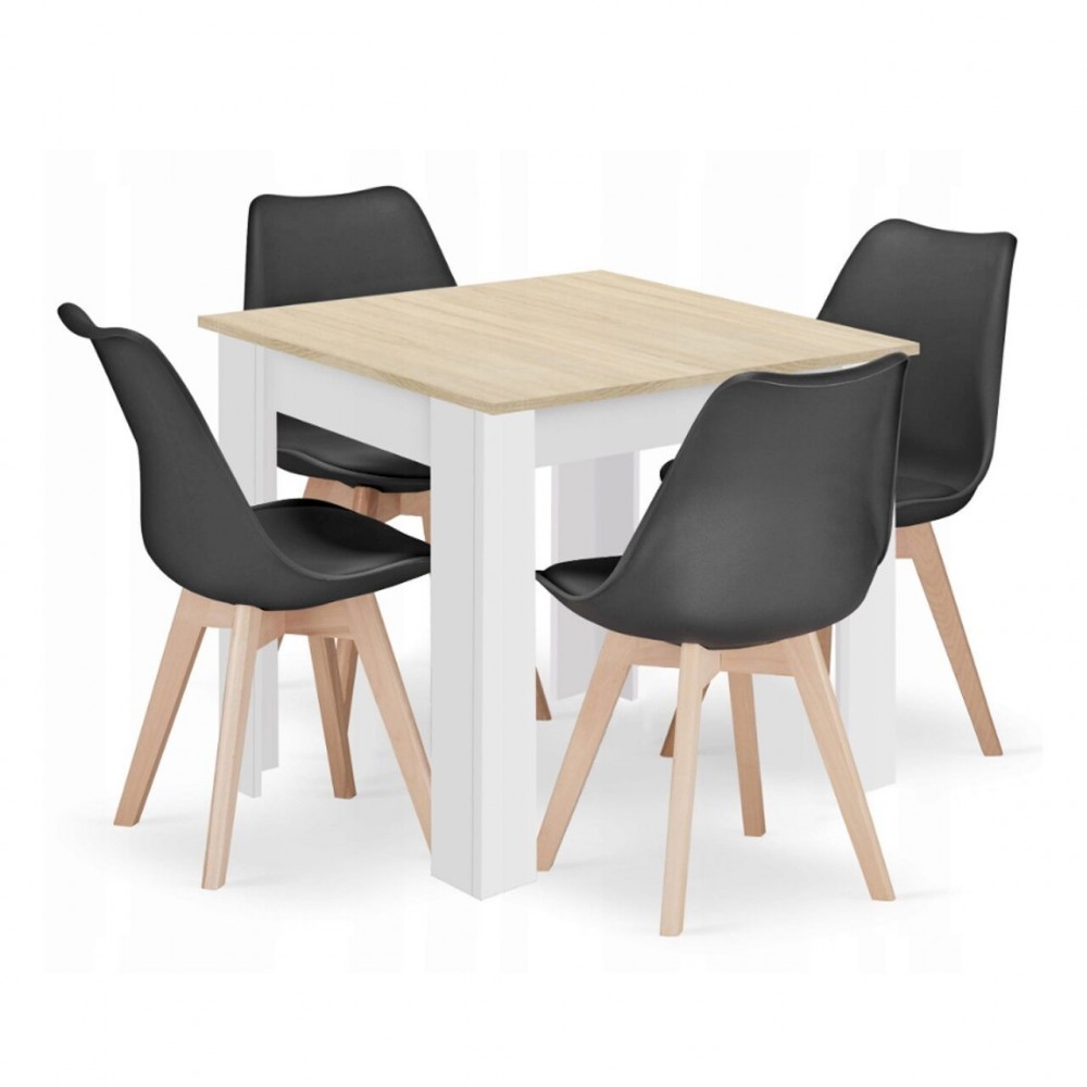 Set masa pentru sufragerie/living + 4 scaune Mark negru, Artool, lemn, stejar sonoma si alb, 80x80x75 cm