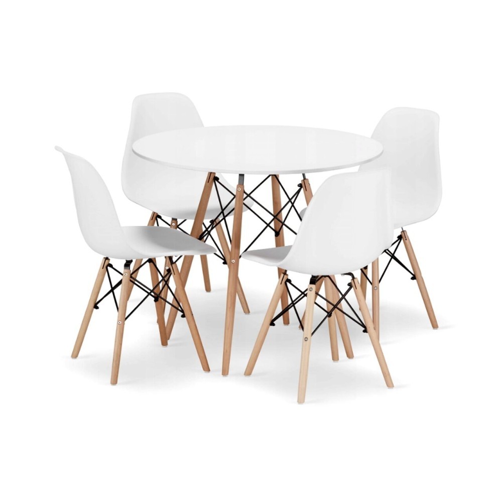 Set masa rotunda stil scandinav + 4 scaune Osaka alb, Artool, MDF si lemn, 90x72 cm