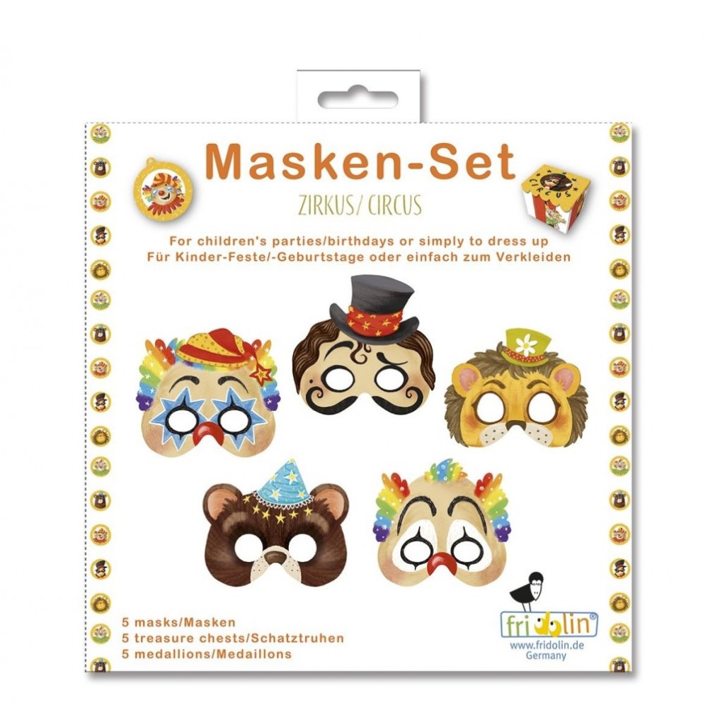 Un set ce conține măști și accesorii cu personaje de la circ, pentru zile de naștere cu tematică, pentru carnaval sau serbare, pentru petreceri deghizate.