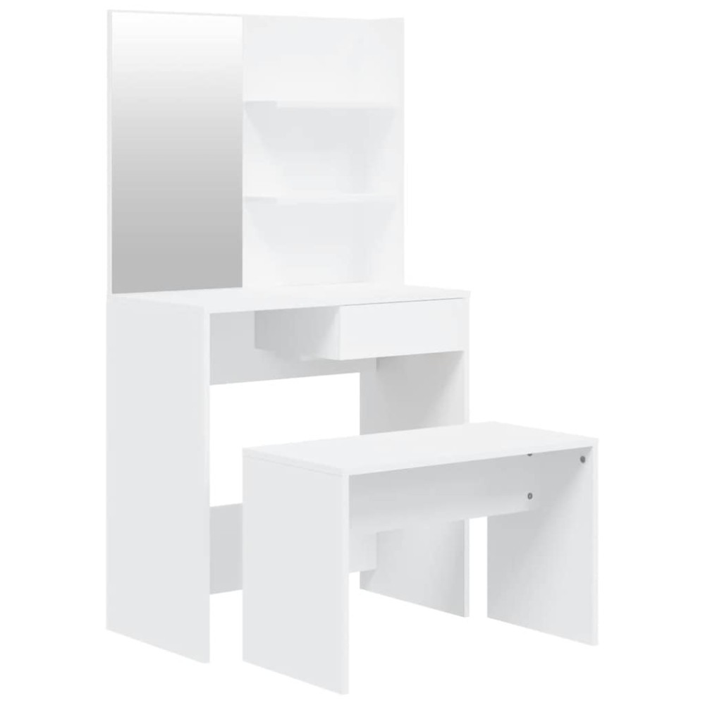 Acest set de masuta de toaleta modern, va oferi dormitorului dvs. un aspect atemporal si rafinat. Masuta de toaleta cu taburet este o completare perfecta pentru decorul dormitorului dvs. si, de asemenea, veti avea produsele cosmetice la indemana!