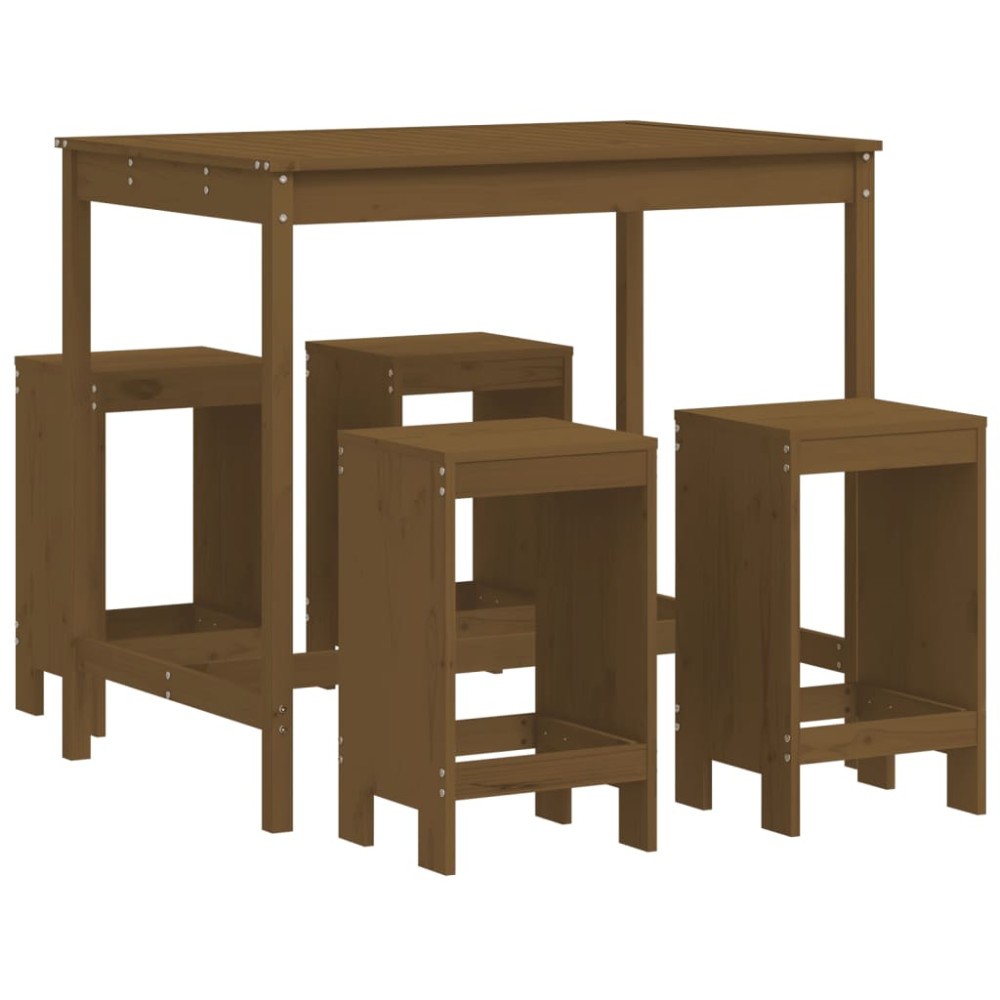 Set mobilier bar de gradina, 5 piese, maro miere lemn masiv pin