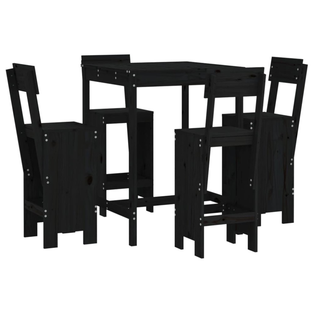 Set mobilier bar de gradina, 5 piese, negru, lemn masiv de pin
