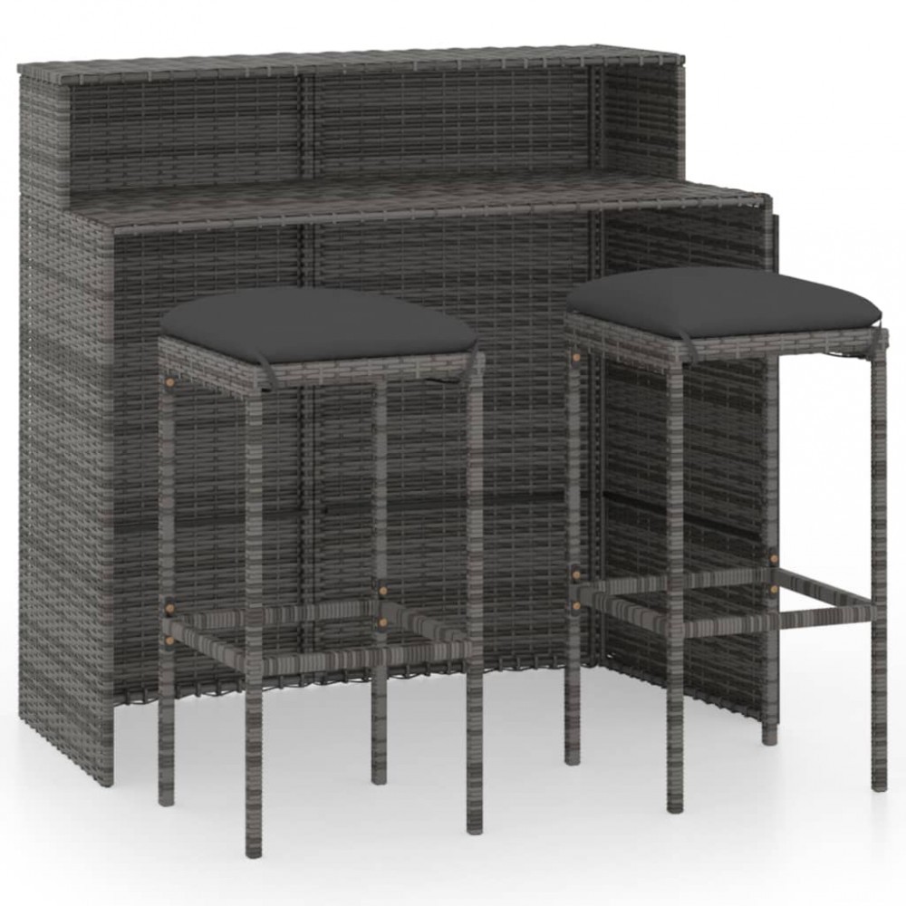 Set mobilier bar de gradina cu perne, 3 piese, gri