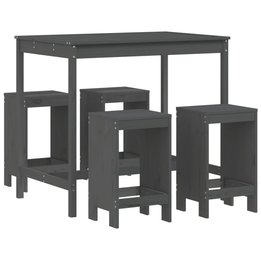 Set mobilier bar pentru gradina, 5 piese, gri, lemn masiv pin
