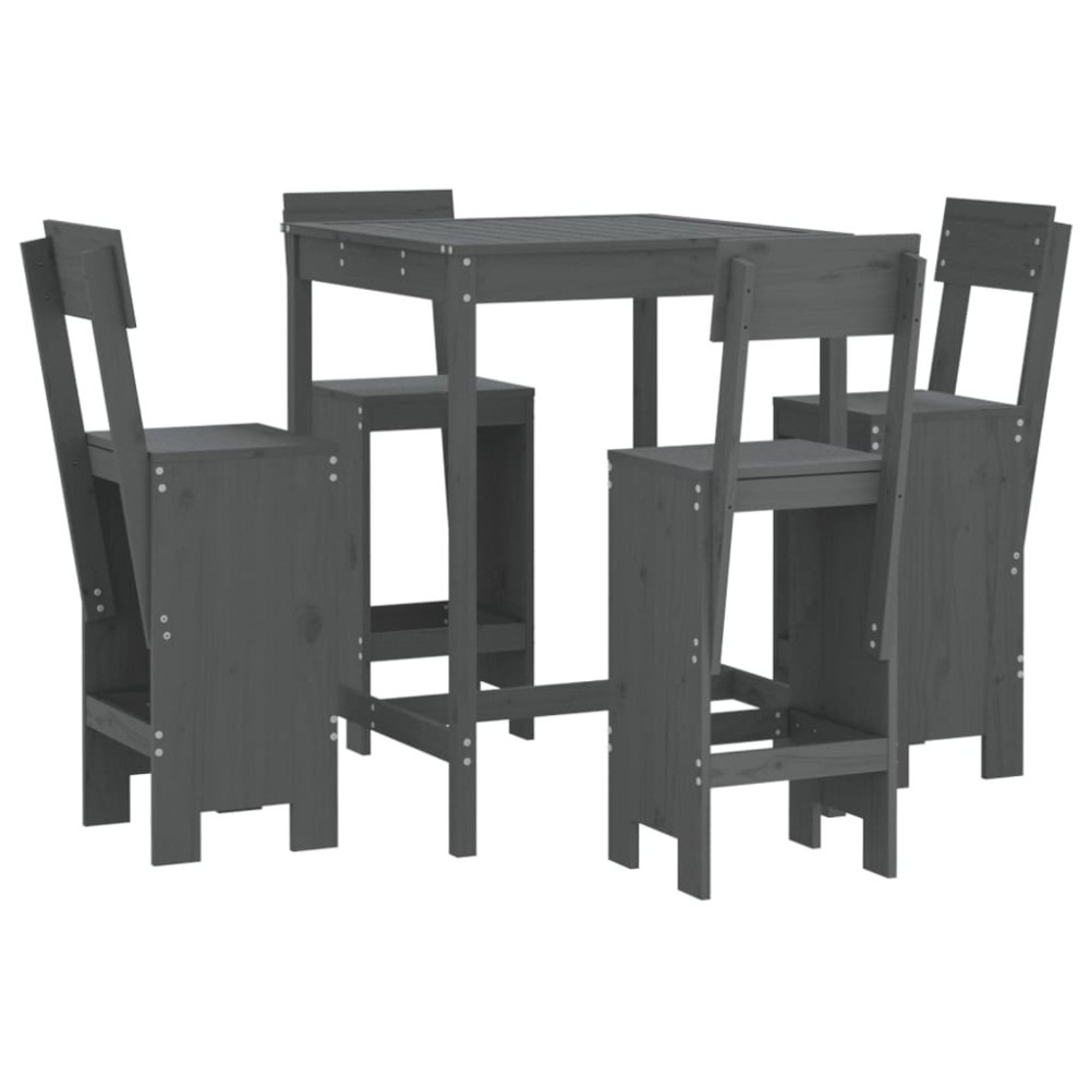 Set mobilier bar pentru gradina, 5 piese, gri, lemn masiv pin