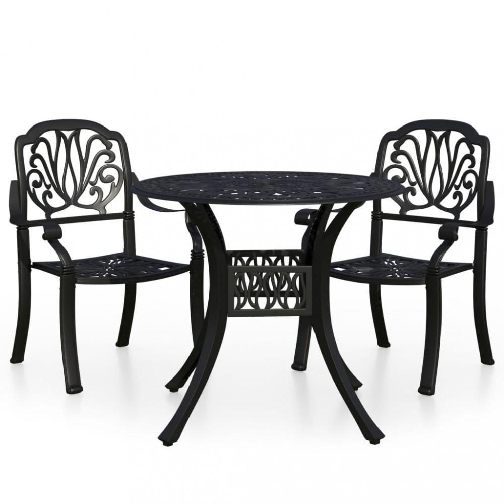 Set mobilier bistro, 3 piese, negru, aluminiu turnat