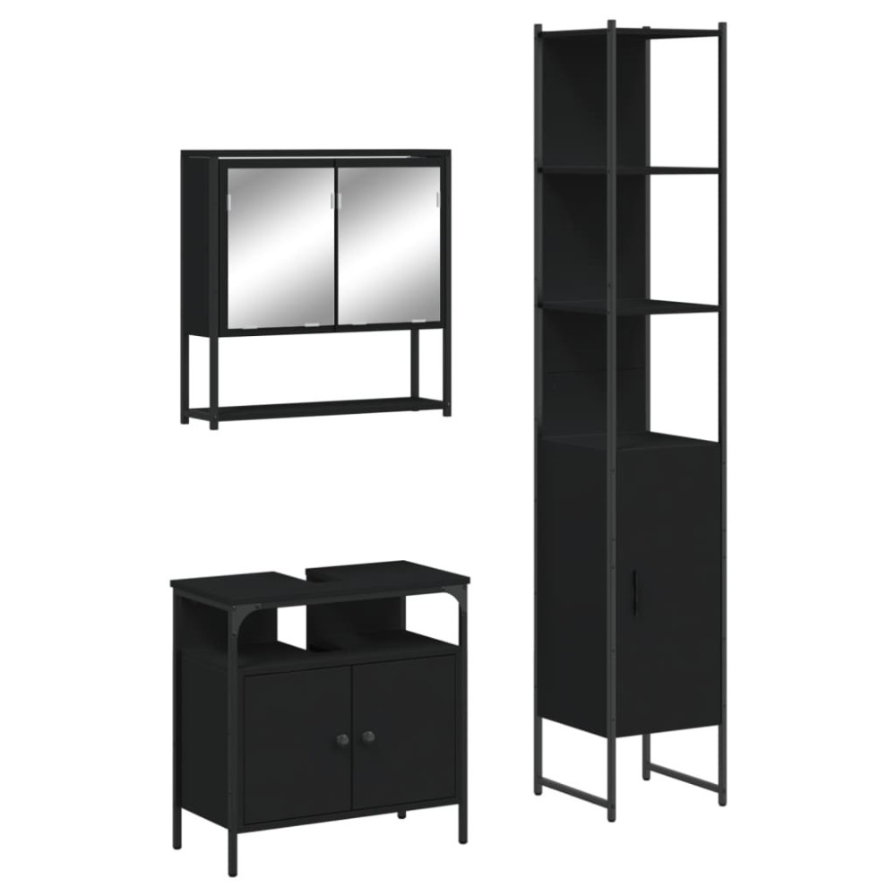 Set mobilier de baie, 3 piese, negru, lemn compozit