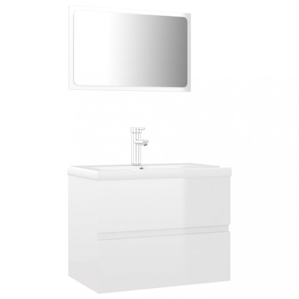 Set mobilier de baie, alb extralucios, lemn prelucrat