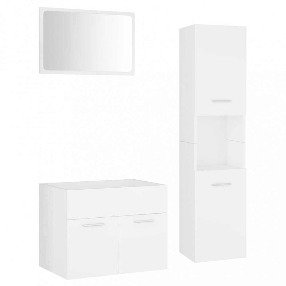 Setul de mobilier consta dintr-un dulap pentru chiuveta, un dulap inalt si o oglinda. Dulapul elegant de lavoar are 1 compartiment, iar partea superioara a acestuia este ideala pentru amplasarea chiuvetei. Dulapul inalt are un total de 5 compartimente si 2 usi, oferind un spatiu amplu de depozitare in baia dvs. Oglinda adauga, de asemenea, un aspect excelent decorului de acasa. In plus, acest set de baie este usor de curatat cu o laveta umeda.