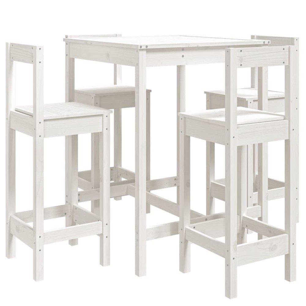 Set mobilier de bar pentru gradina, 5 piese,alb, lemn masiv pin