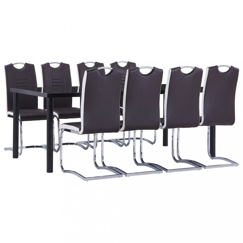 Set mobilier de bucătărie, 9 piese, maro, piele ecologică