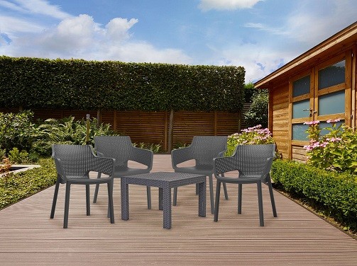 Acest material este rezistent la apă, condiții meteorologice extreme și radiații UV. Datorită acestor proprietăți, mobila arată nouă mai mult timp și nu își pierde culoarea.