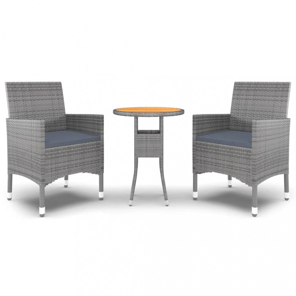 Set mobilier de gradina, 3 piese, gri, poliratan