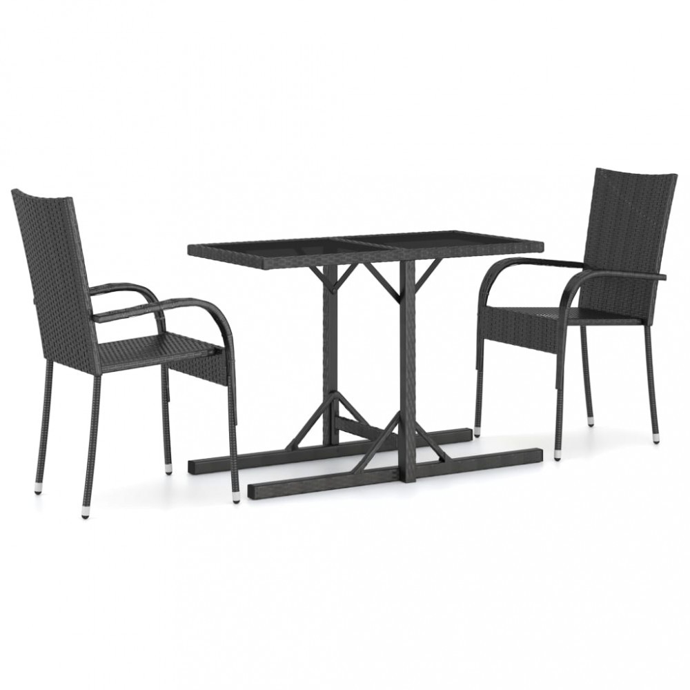 Set mobilier de gradina, 3 piese, negru