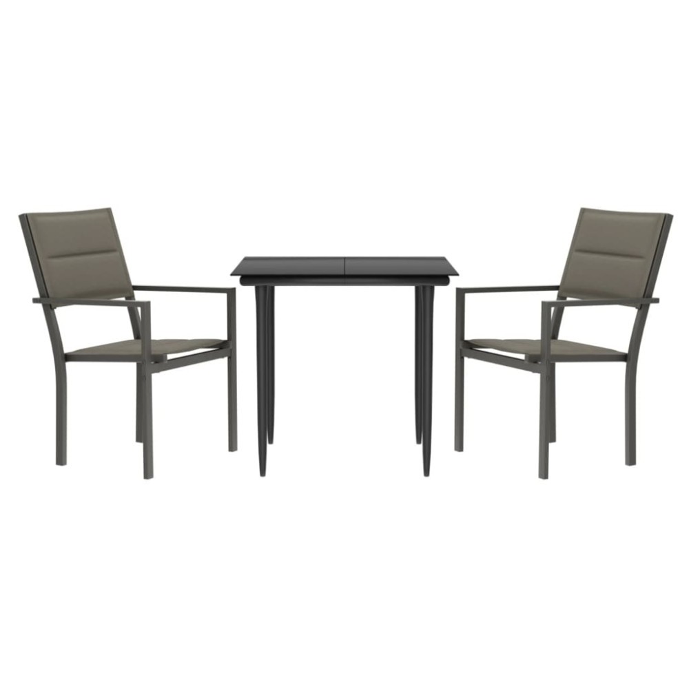 Set mobilier de gradina, 3 piese, negru, textilena si otel