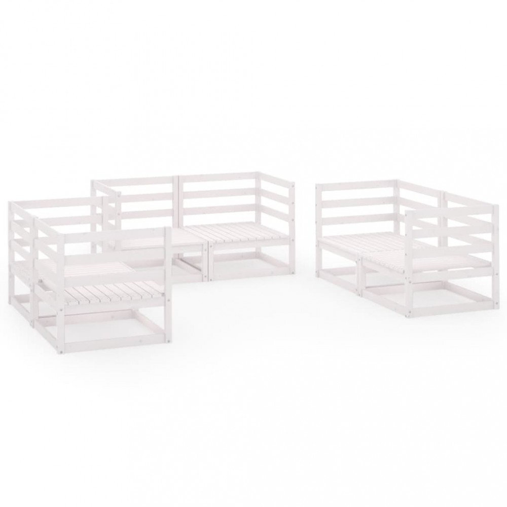 Set mobilier de gradina, 6 piese, alb, lemn masiv de pin